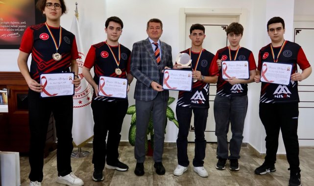 Bilecik İl Milli Eğitim Müdürü Serdal Şimşek, dünya üçüncülüğü elde eden öğrenci ve öğretmenleri makamında kabul etti.