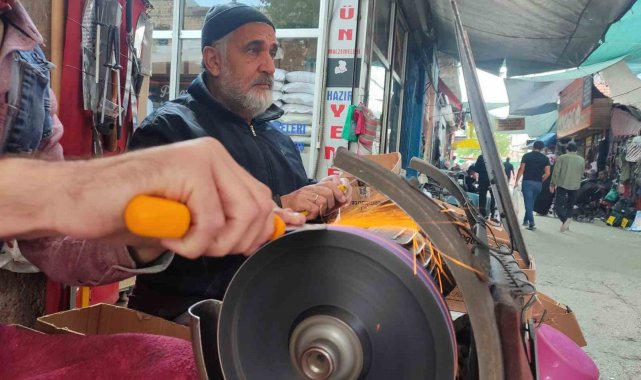 Bıçak bileme işi ve bıçak satışının bir sene hızlı bir sene yavaş gittiğini belirten Ali Sami Özemiş, "Bu sene yavaş senesi, geçen sene daha hızlıydı. Gelecek sene de daha hızlı olacağını tahmin ediyoruz. Sabah 8'de işe başlıyoruz, kurbana bir hafta kala gece 2-3'e kadar bıçak bileme işi yapıyoruz. Çok şükür, Allah kaza bela vermesin, işlerden memnunuz. Bıçak bilenmezse büyükbaş bir kurban yerinden kalkar, ortalığı dağıtabilir. Yaralanmalara sebebiyet verebilir. Kör bıçak her zaman tehlikedir ama keskin bıçak ustanın ellerinde güzel bir sanat meydana çıkarır. Bir aydan beri burada bıçak biliyoruz ama vatandaşlarımızın çoğu son günlere bırakıyor. Hem kendileri sıkışıyor hem de biz çok sıkışıyoruz, ellerimiz sıkışıyor. Çoğu müşteriye ertesi güne sıra veriyoruz. Kimiyle anlaşıyoruz, kimiyle anlaşamıyoruz. Vatandaşlarımız bir ay kala gelip getirmeye başlasınlar. Kendileri için de iyi olur. Bıçak bileme ücreti 30 lira. Satırlar 60 liradan başlıyor. Ağzının bozukluğuna göre satırı 70-80 lira olarak devam edebiliyor. Et makinesi takımları en büyüğü 120 lira, küçük orta boy 100 lira. Bıçak bileme 30 lira genelde" diye konuştu.