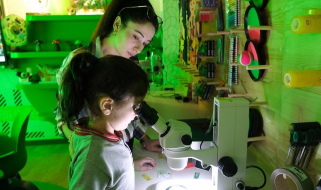 Çorum'da kapılarını açan Bilim ve Teknoloji Merkezi'ni ziyaret eden öğrenciler çeşitli atölyelerde hem öğrendi hem de eğlendi.