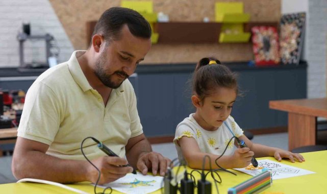 Tasarım Atölyesi bölümünde ise temel tasarım prensipleri, el-göz koordinasyonu, mekansal algı ve düşünce becerilerinin desteklenmesi amacıyla kurgulanan 3 boyutlu kalemlerle tasarım çalışmaları gerçekleştiren katılımcılar, ısı ile eritilerek şekil verilebilen PLA filament malzeme kullanarak kendi hayal güçlerini yansıtan üç boyutlu modelleri hayata geçirdi.