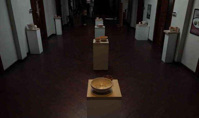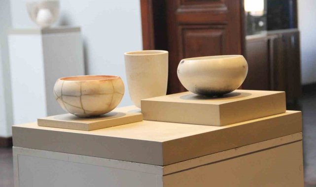 Sergi ile ilgili bilgi veren Sarıkaya, "Serginin tamamı çanaklardan oluşuyor. Müzenin hem mimar yapısına, hem de ambiyansına ve burada bulunan kalıcı eserlere uygun. Çanakların hepsini kalıp yöntemi ile endüstriyel yöntemler ile üretildi. Aslında seramiğin çok geleneksel bir tarafı var. En eski sanat dallarından bir tanesidir. Bu yüzden geleneksel üretim yöntemlerini kullanarak bunları daha çağdaş bir görünümle izleyenlere sunmaya çalışıyorum. Şu an 27 parça seramik eser bulunuyor. Tamamı çanaklardan oluşan, farklı tasarım ve boyutlara sahip eserler. Sergide çanakların tek tek sergilenmemesinin amacı da birbiriyle uyumlu eserleri takım halinde sergilemek görünüş açısından da daha uyumlu oluyor. Çankırı için çok güzel bir sergi olduğunu düşünüyorum. Müzeyi böyle bir seramik sergisi için kullanmama izin verilmesi benim için oldukça değerli. Çankırı Karatekin Üniversitesi ve müze işbirliği açısından da çok değerli bulduğumuz bir durum. Bu ürünler, endüstriyel bir üretim yöntemi olan kalıplar ile şekillendirildi. Şekillenmesinin ardından kurumasını bekliyorum ve ardından bin 40 derecelik ısıda pişirme işlemi gerçekleştiriliyor. Son olarak 'sagar' tekniği ile renklendirme yapılarak sunuma hazır hale geldi" dedi.