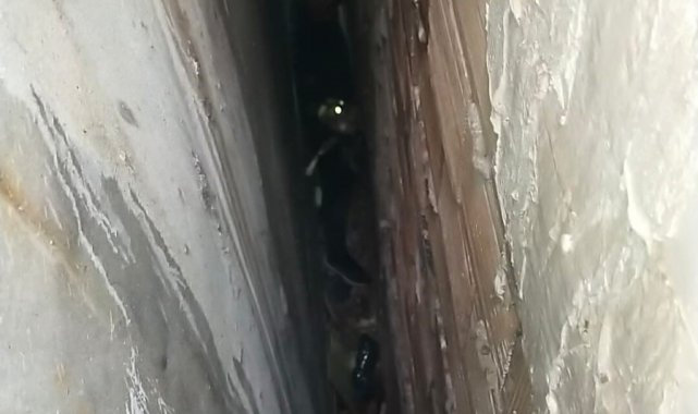 İskenderun ilçesi Doktorlar Caddesi'nde 2 bina arasındaki boşluktan gelen kedi sesini fark eden vatandaşlar kendi imkanlarıyla hayvanı kurtaramayınca durumu itfaiye ekiplerine bildirdiler. İhbar üzerine bölgeye Hatay Büyükşehir Belediyesi itfaiye ekipleri sevk edildi. Yaklaşık 10 metre derinlikteki mahsur kalan hayvanı kurtarmak için başlatılan çalışmayla, itfaiye personelini halatla 30 santimetrelik boşluktan aşağı sarkıtıldı. Zorlu şartlarda yaklaşık 7 saat süren kurtarma ve yakalama çalışmalarıyla kedi kurtarıldı. Ekiplerin iki duvar arasında nefes kesen operasyonuyla kedinin kurtarılması yüzleri güldürdü. Kurtarılan kedi, hayvan barınağına teslim edildi.