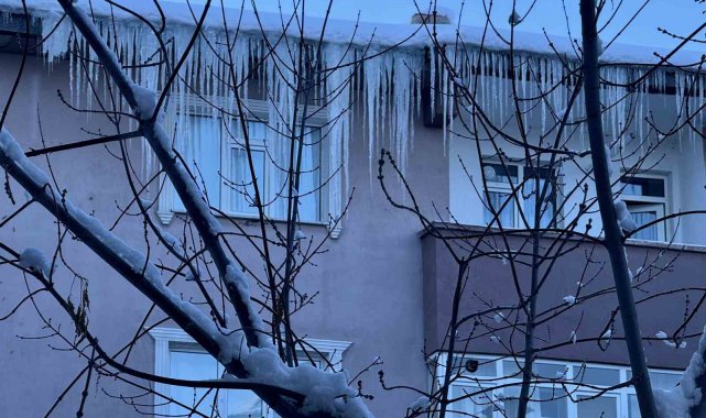 Bina çatılarındaki dev buz sarkıtları tehlike saçıyor