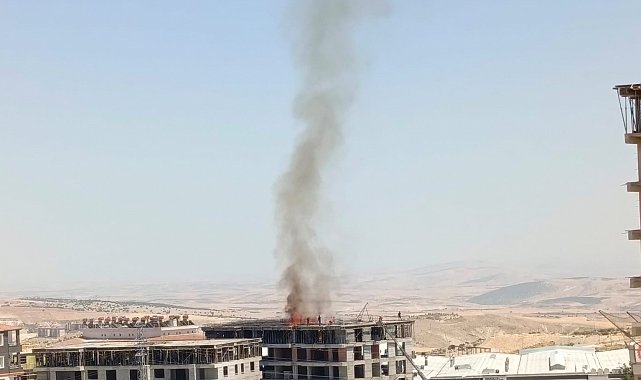 Edinilen bilgilere göre, Besni ilçesi 15 Temmuz Şehitler Mahallesi'nde yapımı devam eden bir binanın çatı katında kalıp tahtaları alev alarak yandı.