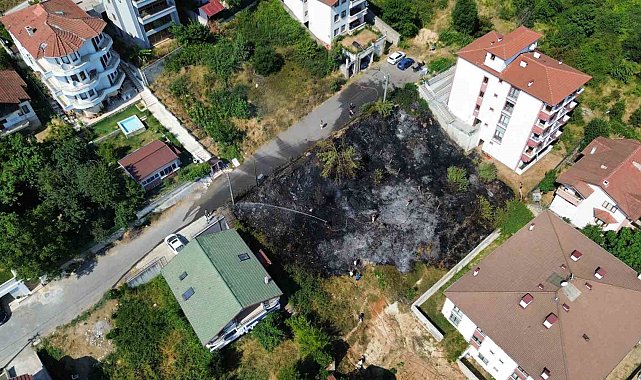 Düzce'de binaların arasındaki boş arazide çıkan yangın, itfaiye ekiplerinin hızlı müdahalesiyle söndürüldü.