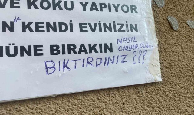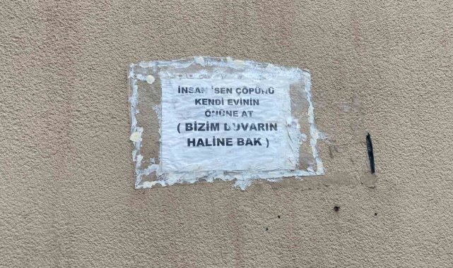 Adalar Mahallesi 3. Dere Sokak'ta bulunan bir duvara yazılan yazılar dikkat çekiyor. Duvar üzerinde bir çok farklı noktada, farklı şekilde, 'Buraya çöp ve yemek dökme', 'Yazıyı insan okur dedik', 'Hayvan eğitilir ama insan', 'Buraya yemek ve çöp dökmeyin, sinek ve koku yapıyor' ve 'Sokak hayvanları için ayırdığınız yemekleri buraya bırakmayın, sinek ve koku yapıyor. Bir gün kendi evinizin önüne bırakın, nasıl oluyor görün. Bıktırdınız' yazıları apartman sakinleri tarafından asıldığı öğrenildi. Bırakın yemek artıkları ve çöplerin apartman etrafında koku ve rahatsızlığa sebebiyet verildiği görüldü. Asılan notlar ise çevreden geçen vatandaşların dikkatini çekti.