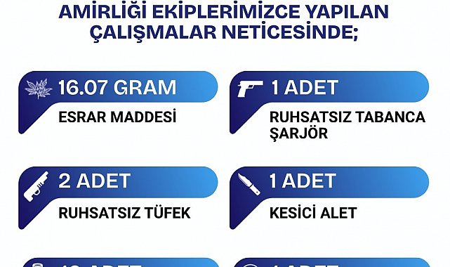 Bingöl İl Emniyet Müdürlüğü, kent genelinde huzur ve güven için çalışmalarına devam ediyor. Bu çerçevede Motosikletli Polis Timleri tarafından yapılan çalışmalarda 16.07 gram esrar maddesi, 1 adet hassas terazi, 1 adet ruhsatsız tabanca, 2 adet ruhsatsız tüfek, 10 adet dolu kartuş ve 1 adet kesici alet ele geçirildi. Ekipler tarafından gözaltına alınan ve işlemlerinin ardından adliyeye sevk edilen 2 şüphelinin, tutuklanarak cezaevine gönderildiği bildirildi.