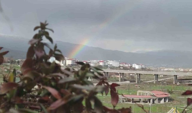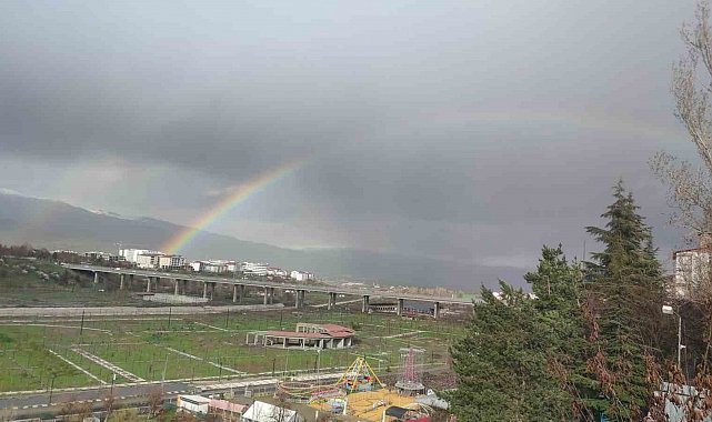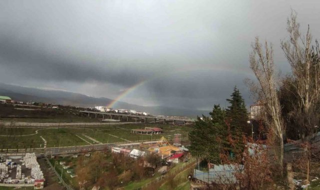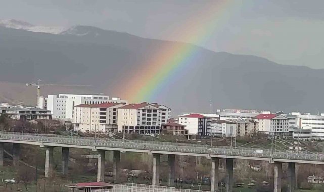 Bingöl'de yağış sonrası ortaya çıkan gökkuşağı, gökyüzünde adeta görsel bir şölen oluşturdu.
