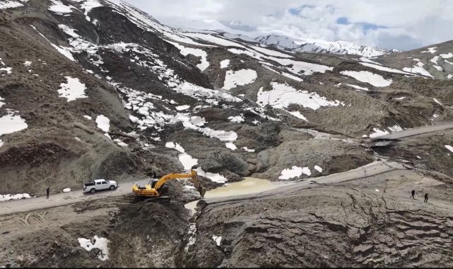 Bingöl'de heyelan sonucu çöken ve kayan grup yolunda ekiplerin çalışması başladı.