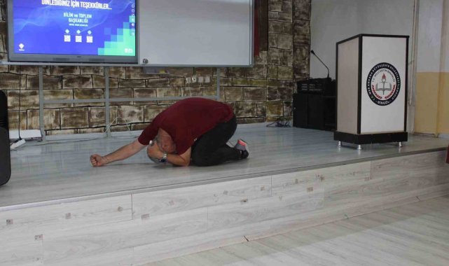 MEB AKUT ekip lideri Serhat Bürke tarafından ise öğrencilere çök-kapan-tutun eğitimi verildi.
