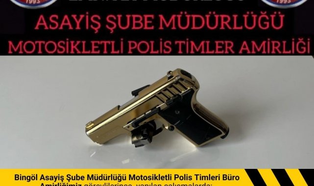 Öte yandan Bingöl Asayiş Şube Müdürlüğü Motosikletli Polis Timleri Büro Amirliği ekiplerince yapılan çalışmada 1 adet ruhsatsız tabanca ve 8 adet fişek ele geçirilirken şüpheli şahıs hakkında adli işlem başlatıldığı bildirildi.