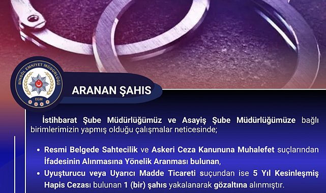 Bingöl'de kesinleşmiş hapis cezası bulunan zanlı polis ekipleri tarafından yakalandı.
