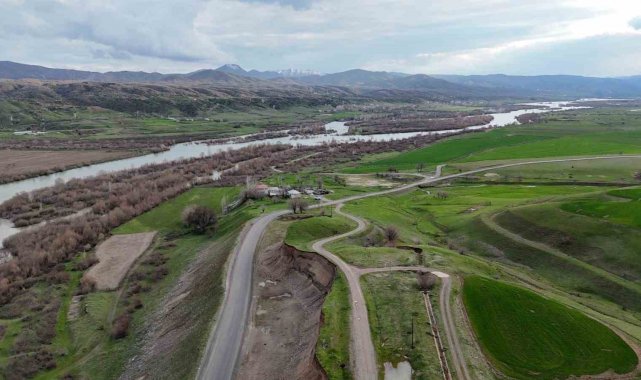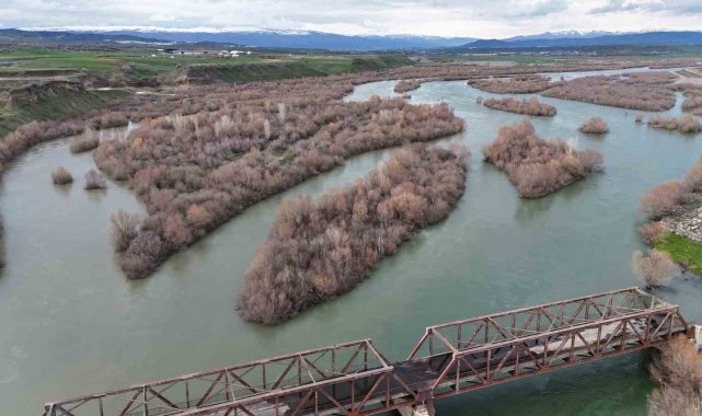 Bingöl'de son günlerde etkili olan sağanak yağışlar ve yüksek kesimlerdeki karların erimesiyle birlikte Murat Nehri'nde su seviyesi gözle görülür şekilde arttı. Debisi yükselen nehir, çevresindeki yeşil alanlarla birleşerek eşsiz bir doğa manzarası oluşturdu. Özellikle ilkbaharın gelişiyle canlanan doğa, nehrin görüntüsüyle kartpostallık karelere sahne oldu. Dron ile kaydedilen görüntülerde, Genç ilçesinin simgelerinden biri olan tarihi köprü de dikkat çekti. Nehrin ortasından geçen köprü, yükselen su seviyesiyle birlikte adeta suyla bütünleşirken, bölgenin tarihi ve doğal güzelliklerini aynı karede buluşturdu.