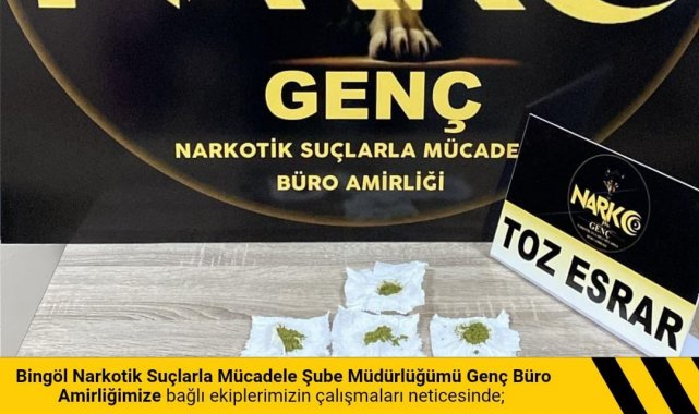 Bingöl'de polis ekipleri tarafından yapılan çalışmada, 1 adet ruhsatsız tabanca, çeşitli tür ve miktarlarda uyuşturucu madde ele geçirildi.