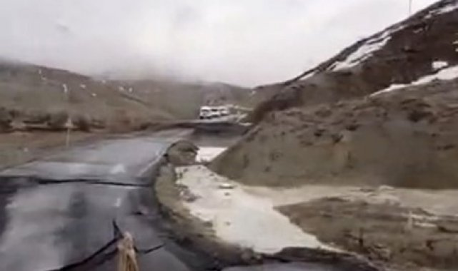 Bingöl'de etkili olan aşırı yağışlar nedeniyle meydana gelen toprak kayması sonucu yol çöktü, ulaşım durdu.