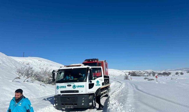 Bingöl'de etkili olan yoğun kar yağışı ve olumsuz hava şartlarına rağmen UMKE ekipleri, sağlık hizmetlerinin aksamaması için fedakarca çalışmalarını sürdürüyor.