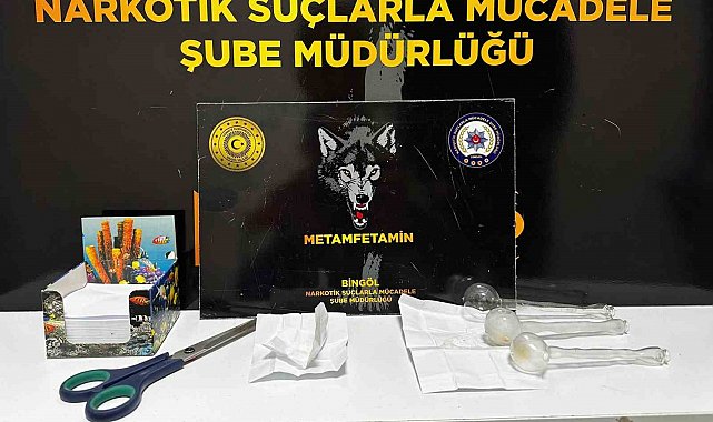 Bingöl İl Emniyet Müdürlüğü Narkotik Suçlarla Mücadele Şube Müdürlüğüne bağlı Narko Timleri uyuşturucu ve uyarıcı madde imal ve ticareti yaparak haksız ekonomik kazanç sağlayan şahıslara yönelik çalışma yaptı. Çalışmada, 3.30 gram metamfetamin maddesi, 3 adet uyuşturucu madde içiminde kullanılan 'pipe' olarak tabir edilen cam aparat, çok sayıda uyuşturucu madde paketlemede kullanılan kağıt parçası, 1 adet uyuşturucu madde paketlemede kullanıldığı değerlendirilen makas, uyuşturucu madde ticaretinden elde edildiği değerlendirilen bin 675 TL ele geçirildi.