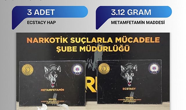 Bingöl Emniyet Müdürlüğü Narkotik Suçlarla Mücadele Şube Müdürlüğü ekiplerince il genelinde gerçekleştirilen çalışmalar neticesinde; 3 adet ecstasy hap ile 3,12 gram metamfetamin maddesi ele geçirildi. Operasyon kapsamında "Uyuşturucu Madde Ticareti Yapma" ile "Uyuşturucu veya Uyarıcı Madde Satın Almak, Kabul Etmek veya Bulundurmak" suçlarından 2 şüpheli şahıs yakalanarak gözaltına alındı. Şüphelilerden biri sevk edildiği adli makamlarca tutuklanırken, diğer şüpheli hakkında adli işlemlerin sürdüğü öğrenildi.