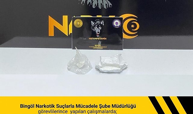 Bingöl Emniyet Müdürlüğü Narkotik Suçlarla Mücadele Şube Müdürlüğü ekiplerince yapılan çalışmalarda 2 fişek halinde 4.5 gram metamfetamin maddesi ele geçirildi. 2 şüpheli şahıs hakkında işlem başlatıldığı belirtildi.