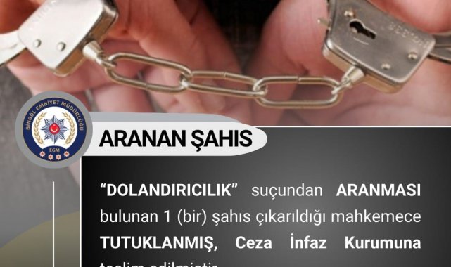 Öte yandan dolandırıcılık suçundan aranması bulunan bir şahsın yakalandığı bildirildi.
