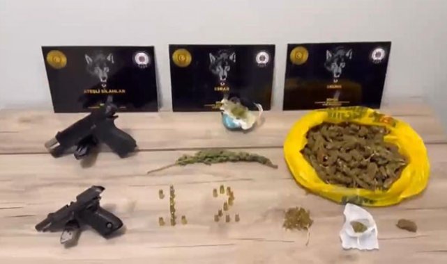 Bingöl İl Emniyet Müdürlüğü Narkotik Şube Müdürlüğü ekipleri kent genelinde uyuşturucuyla mücadele kapsamında çalışmalarını sürdürüyor. Bu çerçevede şüpheliler üzerinde ve ikamet adresinde yapılan aramada; 260,38 gram skunk maddesi, 22 gram esrar, 2 ruhsatsız tabanca, 20 fişek ele geçirildi. Şüpheli 2 şahıs hakkında adli işlem yapıldığı bildirildi.