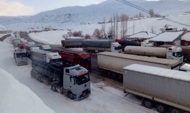Bingöl-Erzurum kara yolu, tipi nedeniyle ağır tonajlı araçların geçişine kapatılınca kilometrelerce kamyon ve tır kuyruğu oluştu.