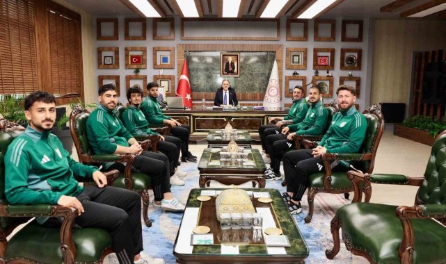 12 Bingölspor futbolcuları şampiyonluktaki son viraj olan Batman Kayra maçı öncesinde Vali Ahmet Hamdi Usta'yı makamında ziyaret etti.