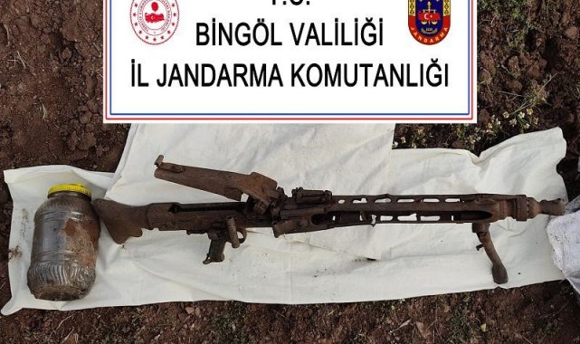 Bingöl'de bölücü terör örgütü PKK'ya yönelik gerçekleştirilen operasyonda toprağa gömülü vaziyette makineli tüfek ve patlayıcı madde ele geçirildi.