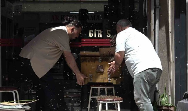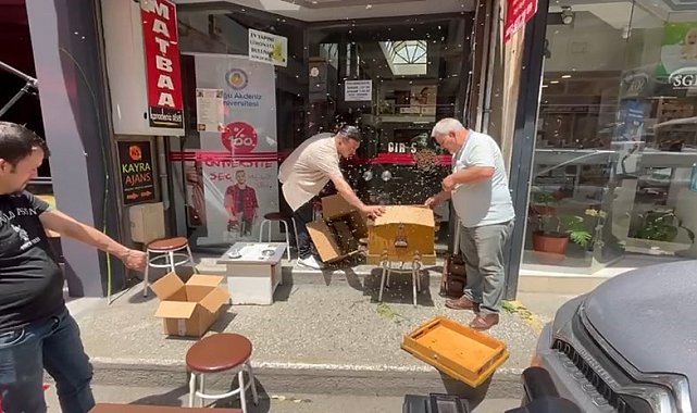 Esnafın bilgi vermesi üzerine olay yerine gelen arıcılıkla uğraşan ekipler, ilk önce kutunun içine aldığı arıları sonrasında ise peteklerin bulunduğu sandığa aldı. Arıları büyük bir soğuk kanlılıkla alan kişiler, esnafa ve vatandaşa da rahat nefes aldırdı.
