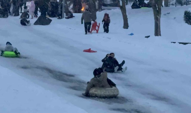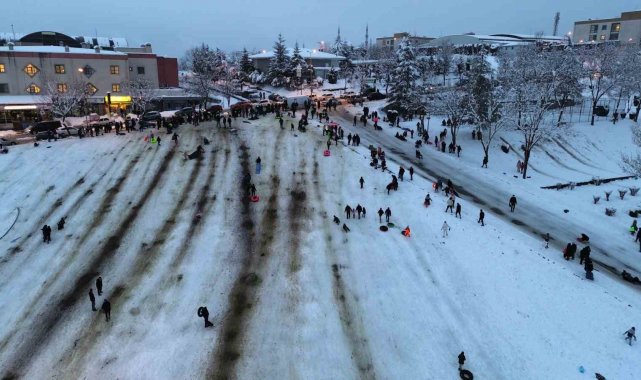 Düzce'de 2 gündür etkili olan kar yağışı sebebiyle kar kalınlığı yer yer 30 santimetreyi geçti. Bu duruma en çok çocuklar sevinirken, binlerce kişi de Bahçeşehir bölgesinde doğal kayak pistinde buluştu. Yeşilvadi park alanında yamaçlara çıkan aileler, çocuklarıyla bielikte yanlarında getirdikleri poşet, bot, kızak ile kayarak doyasıya eğlendiler. Soğuk havaya aldırmadan kayan çocuklarını izleyen, zaman zamanda onlarla birlikte kayan anne ve babalar da çocuklarıyla birlikte keyifli anlar yaşadı.