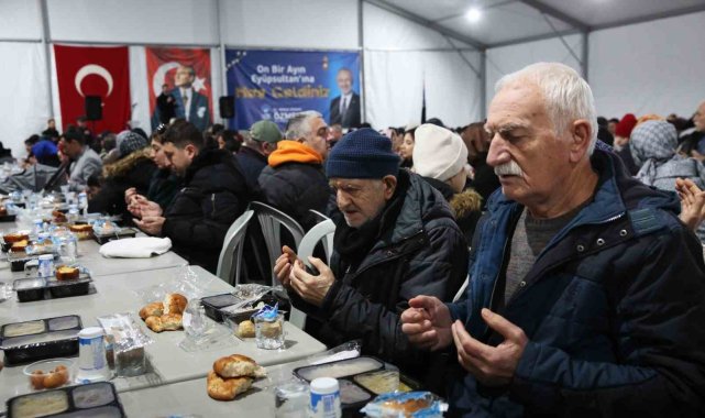 Eyüpsultan Belediye Başkanı Dr. Mithat Bülent Özmen'in ev sahipliğinde düzenlenen iftar sofrasında binlerce vatandaş komşuluk, kardeşlik duyguları içerisinde oturulan gönül sofrasında hep birlikte iftar yapmanın mutluluğunu yaşıyor.