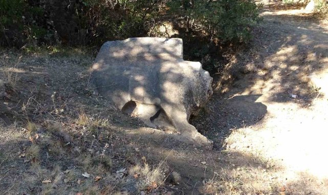 Ormanlık alanın içinde bulunan aslan heykelinin de kaçak kazı yapanların odağında olduğunu söyleyen Gedik, "Buradaki aslanı köydeki öbür aslanımızın yanına koyabilsek veya müze binamıza koyabilirsek ileriye dönük olur. Büyük bir eser ama göz göre göre yok oluyor. Koruma altına alınsa daha güzel olur. Gelen giden misafirler için de iyi olur. Bölgemizin tanıtılması açısından da iyi olur. Kaçak kazının önüne geçilir. Aslan komple vardı ama kaçak kazılar yüzünden harap hale geldi. Bu aslan normalde yukarıdaydı. Kaçak kazı yapanlar tarafından tabanı eşilerek aşağı yuvarlandı. Burayı defineciler kazmış. Dağın her tarafında kaçak kazı var önüne geçip engel de olamıyoruz. Kaçak kazı yapanlar kazdıktan sonra bir şey bulamadıysa kazdığı yeri kapatırsa iyi olur. Buralarda hayvanlar otluyor çukurların içine düşüyor. Ormanımızı harap edip gitmesinler. Buraya bir canlı düşse çıkamaz" dedi.