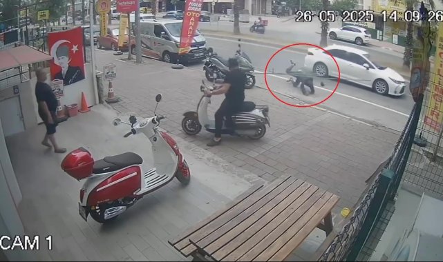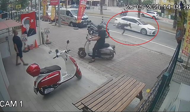 Antalya'nın Muratpaşa ilçesinde omzunda demir borularla yolda yürüyen vatandaş, boruların otomobile çarpması sonucu bir anda kendini yerde buldu. Yaşadığı olaya bir süre anlam veremeyen şahıs, ardından ayağa kalkıp etrafına bakındı. O anlar güvenlik kamerasına yansıdı.