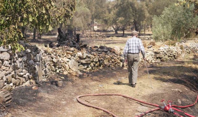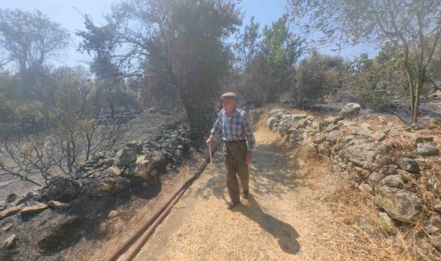 Muğla'nın Yatağan ilçesindeki Stratonikia Antik Kenti içinde etkili olan zirai alan yangını ekiplerin müdahalesi ile kontrol altına alınırken, antik kent sınırları içerisindeki evinde yaşamını sürdüren 94 yaşındaki Durmuş Tandır, bahçelerine bakmak için geldiği yangın yerinden görevliler tarafından zar zor ikna edilerek uzaklaştırıldı.