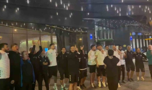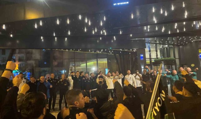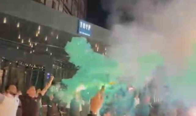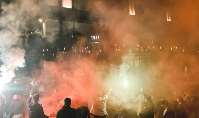 Trendyol 1. Lig'de Boluspor'un Fatih Karagümrük'ü mağlup etmesiyle matematiksel olarak Süper Lig'e çıkmayı garantileyen Kocaelispor'un bir grup taraftarı kutlamayı, maç için İstanbul'da olan takımın oteline giderek yaptı