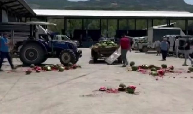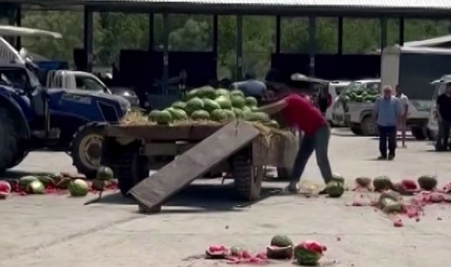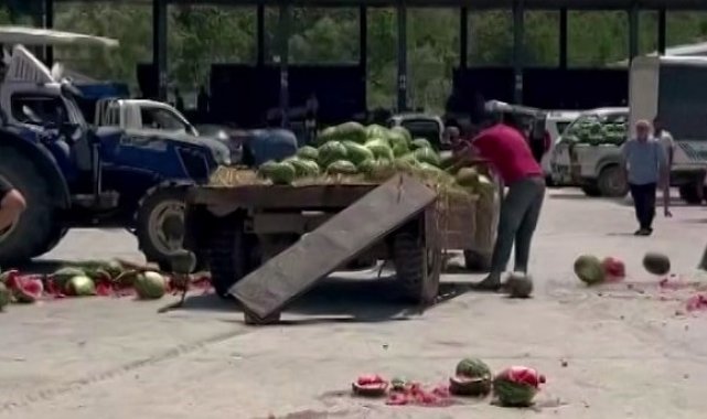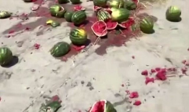 Sakarya'nın Geyve ilçesinde bir çiftçi, mahsulünün para etmemesine tepki göstererek, bir römork dolusu karpuzu yere fırlattı. O anlar cep telefonu kamerası ile saniye saniye kaydedildi.