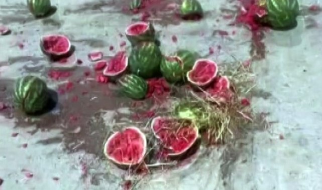 Bir römork dolusu karpuzu pazarın ortasında yere fırlatarak parçaladı