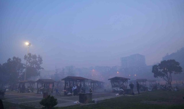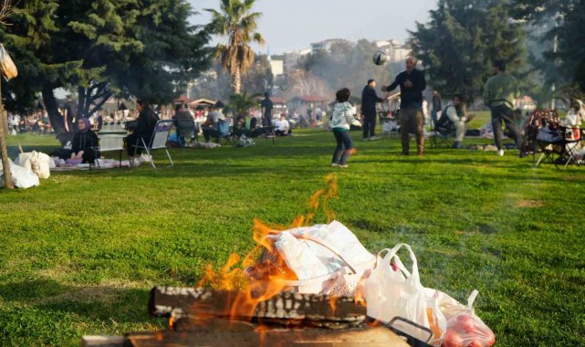 Samsun'da parkta toplanan binlerce kişi, geleneksel hale getirdikleri alışkanlık üzerine oruçlarını piknik yaparak mangal eşliğinde açıyor. Birçok mangalın aynı anda yanmasıyla da gökyüzünü duman bulutu kaplıyor.