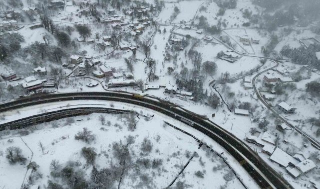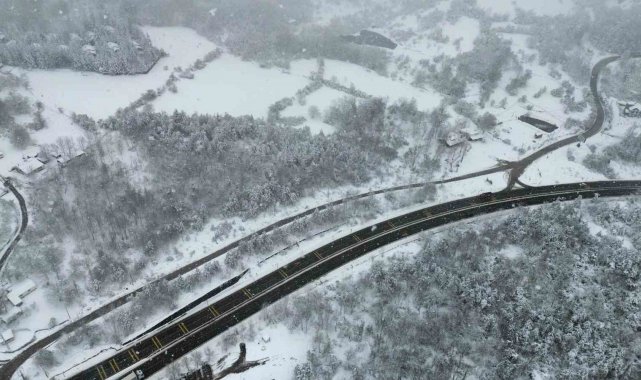 Meteoroloji'den yapılan kar yağışı uyarısının ardından kentin yüksek kesimlerinde kar yağışı etkili oldu. Yer yer 50 santimetreye ulaşan kar kalınlığı aralıklarla yağan kar yağışı ile artarken, bazı bölgelerde ise güneş hakimliğini koruyor. Bu çerçevede Kaynaşlı'nın yüksek kesimlerinde yoğun kar yağışı etkili olurken, yağışın 4 kilometre uzağında ise güneş açması dikkat çekti. Yoğun kar yağışında olan bölge havadan dron ile görüntülenirken, kar yağışının Cumartesi günü öğlen saatlerinden itibaren etkisini kaybetmesi bekleniyor.