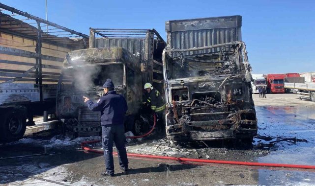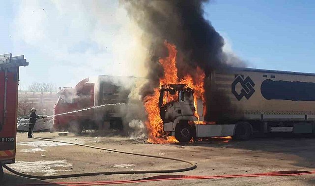 Bir tırda çıkan yangın yandaki 2 tıra daha sıçradı