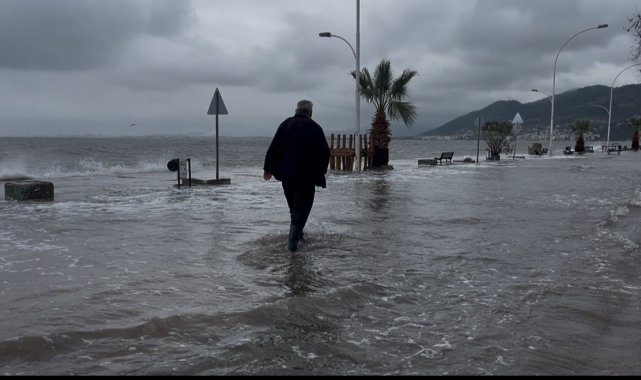 Marmara Denizi'nde etkili olan fırtına nedeniyle oluşan dev dalgalar, Bursa'nın Gemlik ilçesinde sahil yolunu trafiğe kapattı. Deniz suyu işletmelerin kapılarına kadar ulaştı, bazı bölgeler sular altında kaldı.