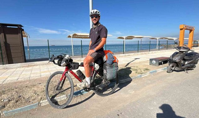 Bisiklet turunda 3 buçuk ayda 2 bin 500 kilometreyi pedallayan genç, Türkiye'nin en güneyine ulaştı