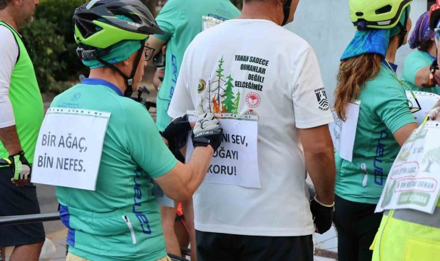 Bisikletçiler orman yangınlarına dikkat çekmek için pedalladı