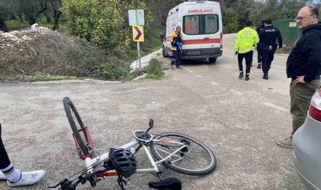 Bursa'nın Mudanya ilçesinde meydana gelen kazada bir bisiklet sürücüsü ağır yaralandı. Bisikletli gencin karşı şeride geçip otomobile çarpmamak için su giderine savrulduğu anlar kameraya yansıdı. Bisikletli genç yaralı olarak kurtuldu.