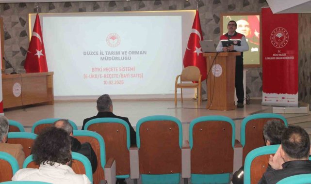 Düzce İl Tarım ve Orman Müdürlüğü koordinesinde gerçekleştirilen toplantıda, bitki koruma ürünü bayilerine B-Reçete uygulaması, gübre bayilerine ise Gübre Takip Sistemi (GTS), gübre mevzuatı, denetim süreçleri ve uygulama esasları hakkında kapsamlı bilgilendirme yapıldı.