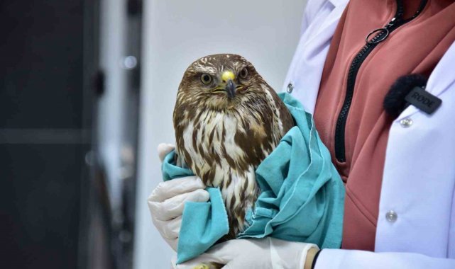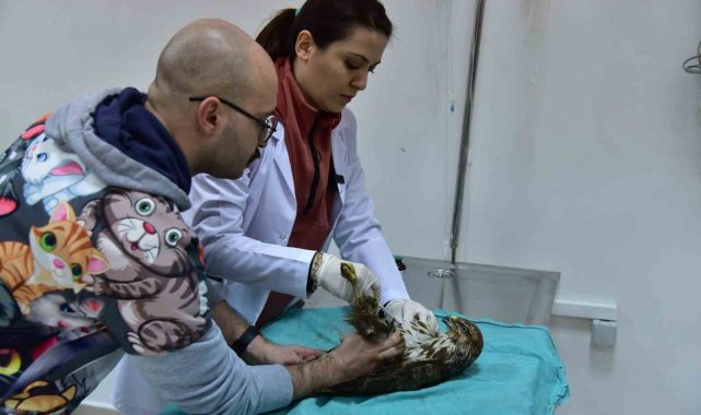 Bitkin halde bulunan şahin tedavi edilerek doğaya salındı