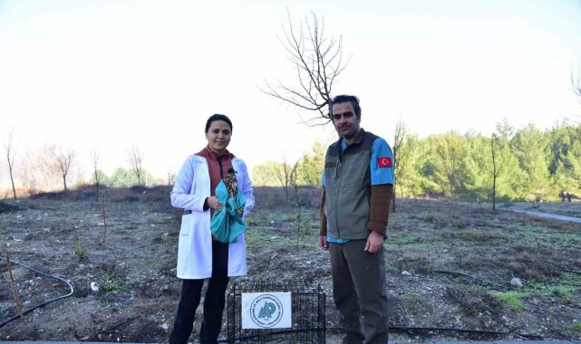Bir vatandaş tarafından doğada uçamaz halde bulunarak, Balıkesir Üniversitesi Veteriner Fakültesi Hayvan Hastanesinde tedavi olan şahin, özgürlüğüne kavuştu