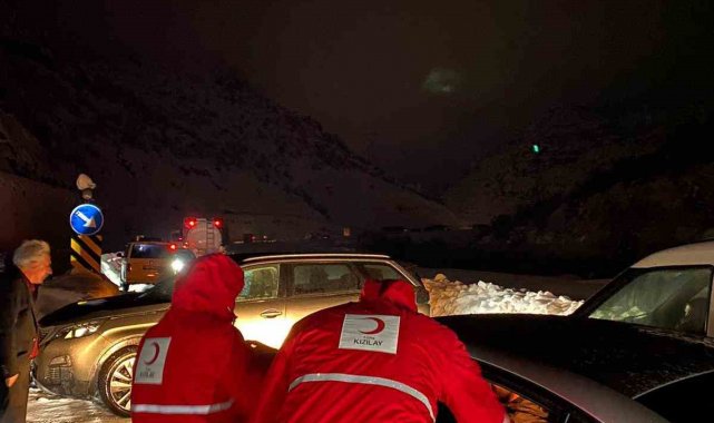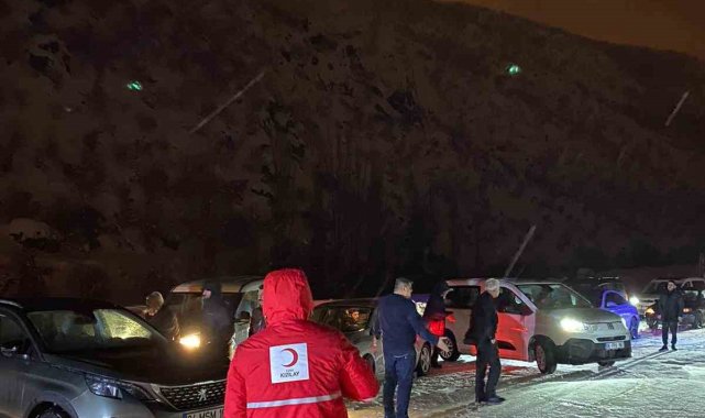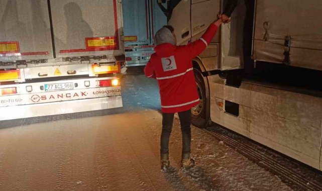 Bitlis'te etkili olan yoğun kar yağışı nedeniyle Bitlis-Baykan karayolu üzerinde bulunan Bitlis Çayı Viyadüğü'nde saat 19.30 sıralarında bir tırın kayması sonucu yol ulaşıma kapandı. Kayan tır nedeniyle trafikte uzun araç kuyrukları oluşurken, Karınca köyü mevkiinde çok sayıda vatandaş yolda mahsur kaldı. İhbar üzerine bölgeye karayolları ekipleri sevk edilirken, AFAD İl Müdürlüğü ile koordinasyon içerisinde Türk Kızılay Bitlis İl Merkezi Başkanlığı tarafından saat 19.30'da destek çalışması başlatıldı. Kızılay personeli ve gönüllülerinin katılımıyla yolda mahsur kalan vatandaşlara kek, meyve suyu ve su ikram edildi. Yaklaşık 3 saat süren çalışmaların ardından yol kontrollü şekilde trafiğe açılırken, zorlu hava şartları nedeniyle bölgede mağduriyet yaşayan vatandaşların temel ihtiyaçları karşılandı. Ulaşım ekiplerin yönlendirmesiyle sağlanıyor.