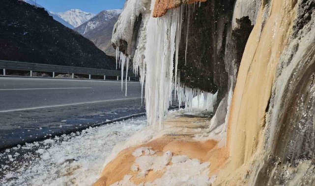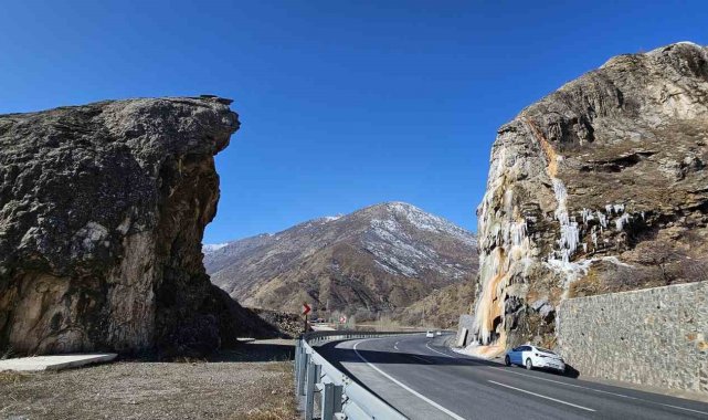 Bitlis'in simgelerinden 'Deliklitaş' buzla kaplandı