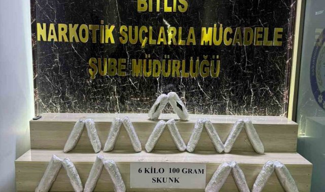 Bitlis Emniyet Müdürlüğü ekiplerinin uyuşturucu ile mücadele kapsamında yürüttüğü çalışmalar neticesinde 6 kilo 100 gram skunk maddesi ele geçirildi.